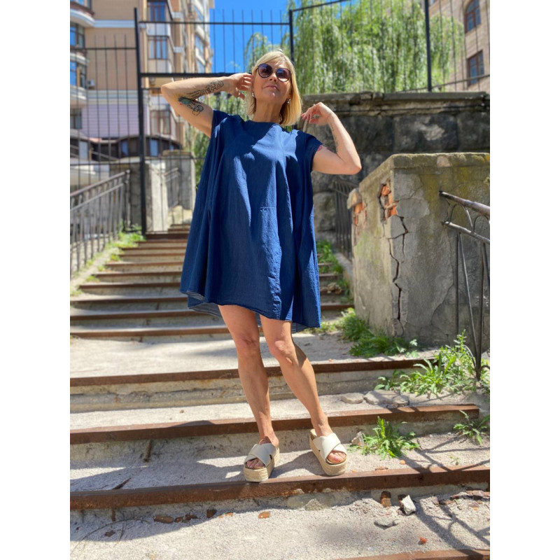 Обьємна коротка легка сукня з поллегшеного денму дуже оригінального крою .