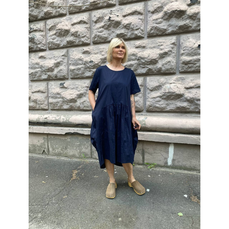 Легка сукня з бавовни з опущеною лінією талії злегка вкорочена спереду та з кишенями у бічних швах