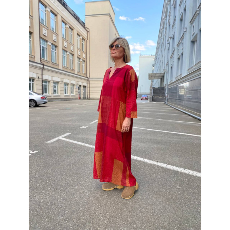 Сукня у велику клітинку бордо