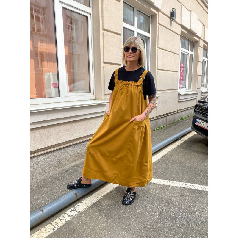 Обьємний сарафан на регульованих бретелях із накладними кишенями , глибокого гірчичного кольору. Стильний,, дуже комфортний та оригінальний.