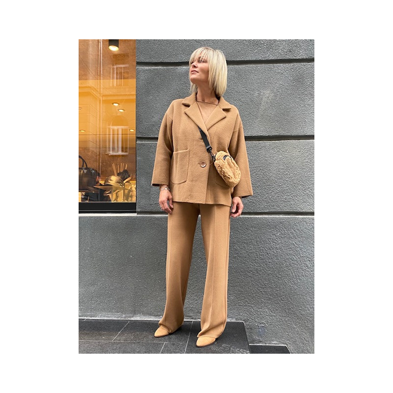 Сумка круглой формы из искусственного меха, на молнии и с ремешком из сутажной ленты.