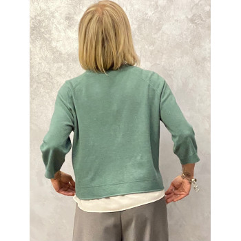 Светр укорочений спереду з рукавами 3/4 і з підкладкою зі штучного молочного шифону, що виглядає з-під спинки