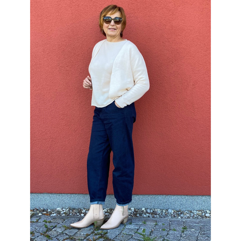 Цей класичний СВЕТР круглої в'язкой без швів з боків, (пов'язаний трубою), що свідчить про найвищу якість, має круглий комір із закрученими краями та дуже м'який кашеміровий комфорт. Довжина: 60 см. Розмір ОГ до 116 см.