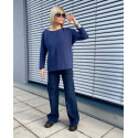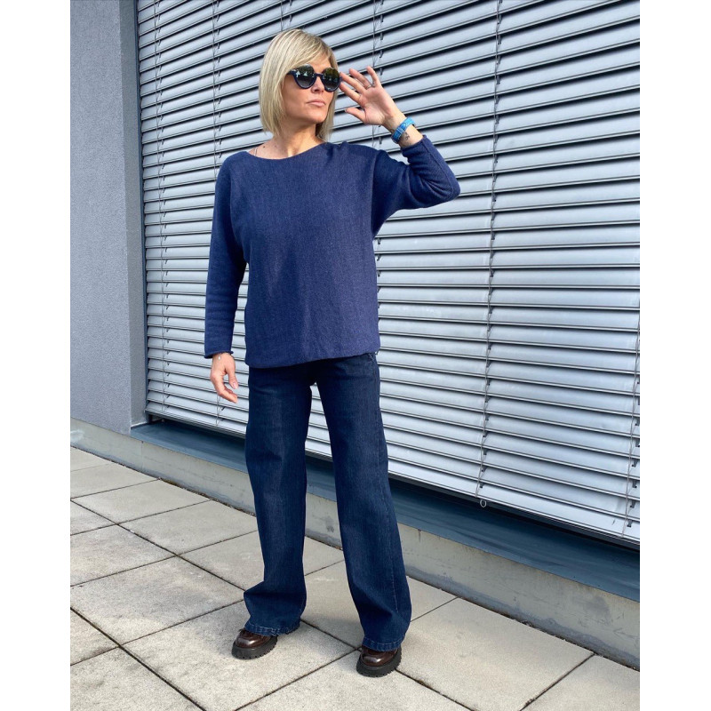 Светр звязаний по горизонталі ,тобто зліва на право . Виріз горловини човником робить його неймовірно жіночним.