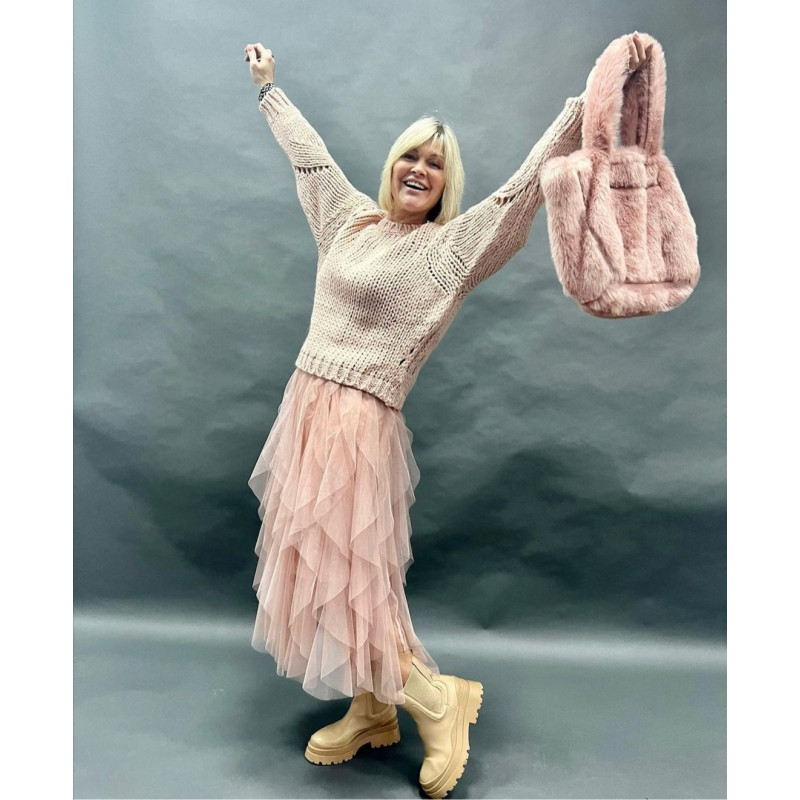 Светр з грубої але м'якої та приємної в'язки. Декорований дірочками по рукавах та з боків светра
