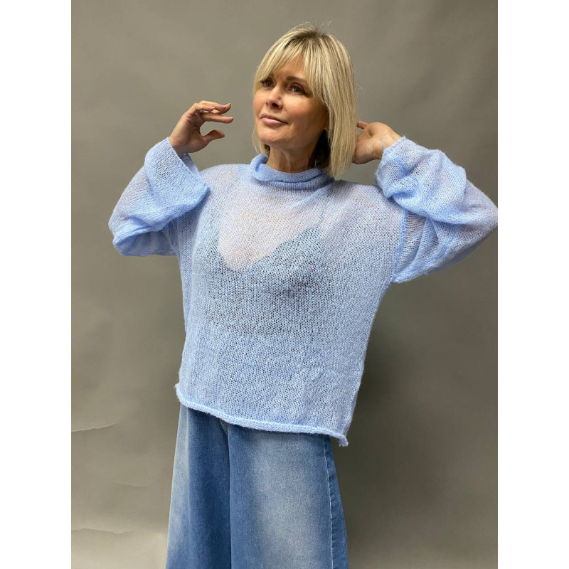 Оверсайз светер з опущеною проймою та широкими рукавами та піднятим коміром.