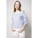 Блуза в смужку, з оголеними плечима, та рукавами 3\4 на зав'язках