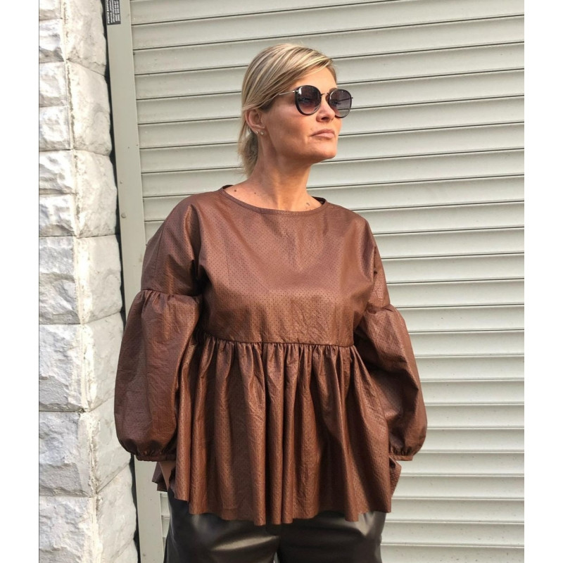 Блуза коричневая екокожа