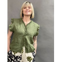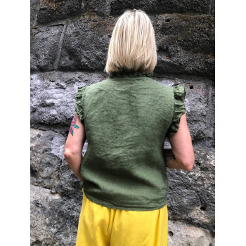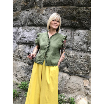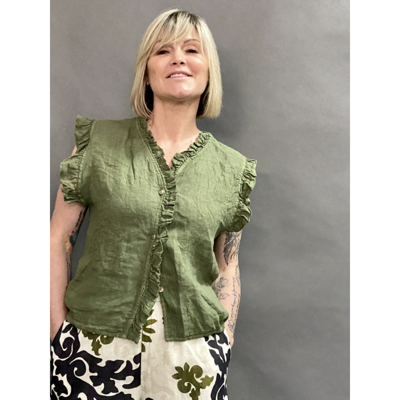 Блуза із 100% льону без рукавів з оборками, легка, приємна до тіла, на гудзиках. Довжина 60 см, на об'єм грудей до 104 см